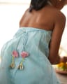 This high-low halter-style top with a U-back and tassel tie-up is a true standout! Paired with beautifully flared sharara pants, this outfit is both versatile and stylish. The intricate tassels and the attention to detail on the selvedge add a touch of elegance, reflecting the care and importance we place on the textiles we create for our festive edit. We couldn't be more proud of what we've designed! This set is incredibly versatile wear it together or mix and match with other pieces for a fresh, stylish look. We encourage you to make the most of these separates, giving them a longer life beyond a single occasion.
