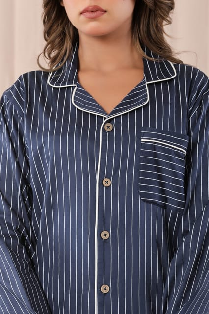 The Midnight Stripes Sleepwear Set is designed to suit everyone, blending effortless style with ultimate comfort. Crafted from 100% organic cotton, this set features a chic black-and-white pinstripe pattern that transcends gender, offering a versatile option for restful nights or lounging in style.