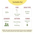 खनिज तेलों, पैराफिन, पैराबेन्स, पेट्रोलियम व्युत्पन्नों और सिंथेटिक सुगंधों से मुक्त, यह चिकित्सीय-ग्रेड फ़ॉर्मूला कोमल होते हुए भी प्रभावी है। शुद्ध आवश्यक तेलों की उपस्थिति के कारण, त्वचा पर पैच परीक्षण की सलाह दी जाती है।